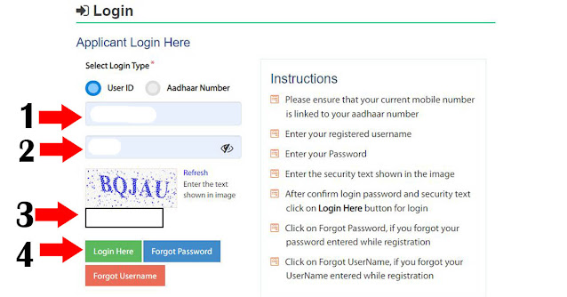 - Username ( लक्षात राहील असा युसर नेम बनवा आधार नंबर टाकला तरी चालेल )